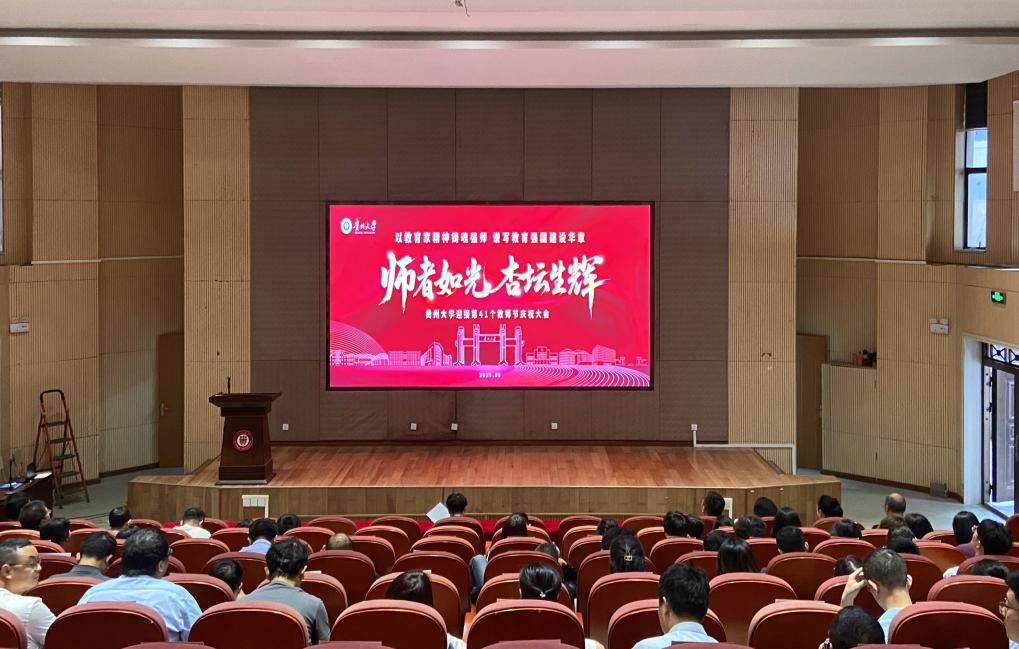 慶祝大會上,一批在教育教學(xué)、科研創(chuàng)新、管理服務(wù)等方面表現(xiàn)突出的優(yōu)秀教師和先進(jìn)集體受到表彰,貴州大學(xué)黨委書記楊未為我院馮毅雄教授領(lǐng)銜申報(bào)獲得的第四批全國高校黃大年式教師團(tuán)隊(duì)頒獎(jiǎng)。