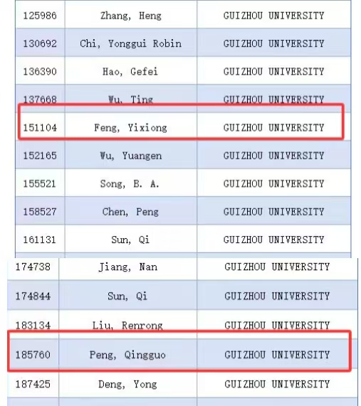 2025年9月19日,美國斯坦福大學(xué)(Stanford University)與愛思唯爾(Elsevier)聯(lián)合發(fā)布了第八版《全球前2%頂尖科學(xué)家榜單2025》(World’s Top 2% Scientists 2025)。該榜單依托Scopus數(shù)據(jù)庫的引用數(shù)據(jù)進行系統(tǒng)分析,從全球近700萬名科學(xué)家中,依據(jù)“生涯影響力”和“年度影響力”兩項指標,遴選出世界排名前2%的頂尖科學(xué)家。其中,中國有12374位學(xué)者入選“終身榜”,31685位學(xué)者入選 “2025 年度榜”。我院馮毅雄教授、彭慶國副教授亦榜上有名,成功入選2025年全球前2%頂尖科學(xué)家“年度影響力”榜單,如圖1所示。